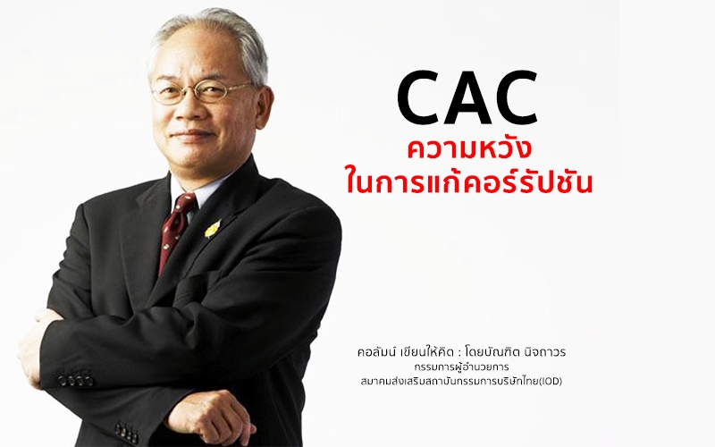 การรวมตัวของบริษัทเอกชนในโครงการCAC แสดงชัดเจนถึงการเปลี่ยนแปลงที่กำลังเกิดขึ้นในสังคมธุรกิจของประเทศที่ต้องการเห็นการทำธุรกิจเป็นไปตามหลักการกำกับดูแลกิจการที่ดี โปร่งใสตามหลักธรรมาภิบาล ไม่มีการจ่ายสินบนหรือทุจริตคอร์รัปชัน เป็นโมเมนตัมของการเปลี่ยนแปลงที่กำลังเกิดขึ้นในภาคเอกชน สมควรที่ทุกฝ่ายต้องให้ความสำคัญและสนับสนุน