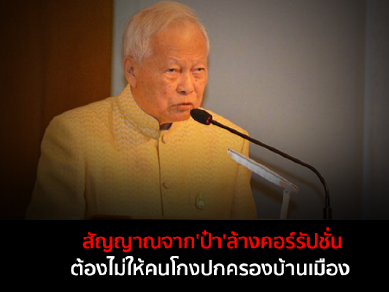 ทั้งนี้ "ป๋าเปรม" เปรียบการทุจริตคอร์รัปชั่นเหมือนมะเร็งร้ายที่กัดกร่อนทำลายชาติบ้านเมือง โดยเฉพาะ หากผู้มีอำนาจปกครองประเทศใช้อำนาจโกงชาติปล้นแผ่นดิน นับเป็นอันตรายต่อความมั่นคงของชาติ เพราะคนที่ฉ้อราษฎร์บังหลวงโกงชาติปล้นแผ่นดินย่อมสามารถทำสิ่งชั่วร้ายได้ทุกอย่าง